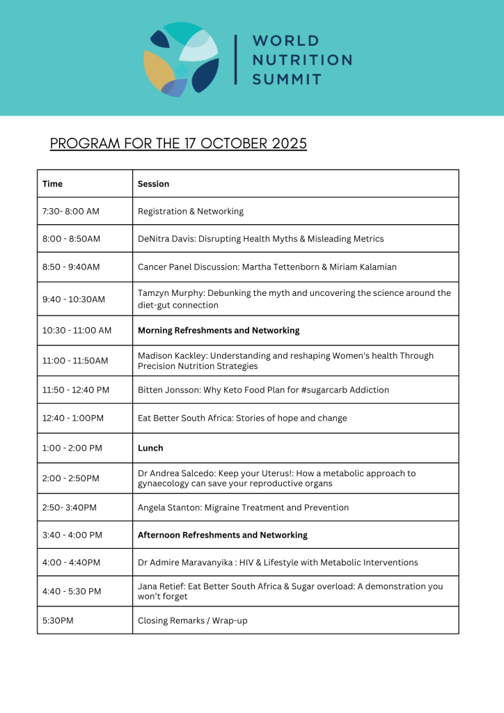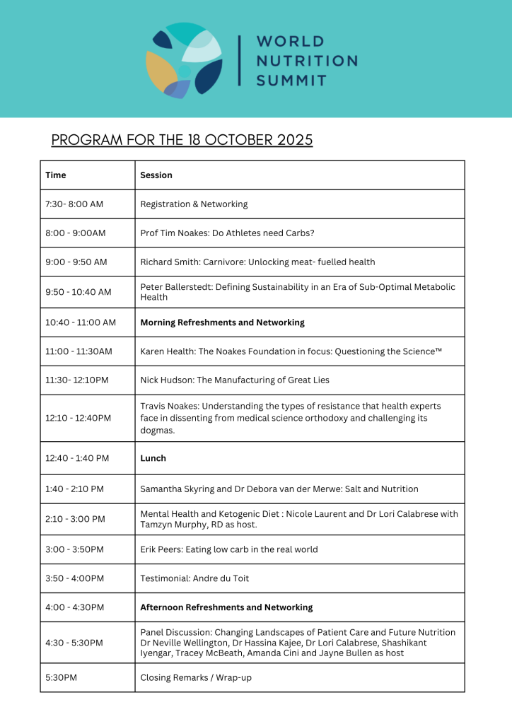 The World Nutrition Summit 2025 is where science meets transformation. Hosted by The Noakes Foundation, this annual event brings together leading global experts, doctors, researchers, and change-makers who are challenging the status quo in nutrition, metabolic health, and chronic disease management.