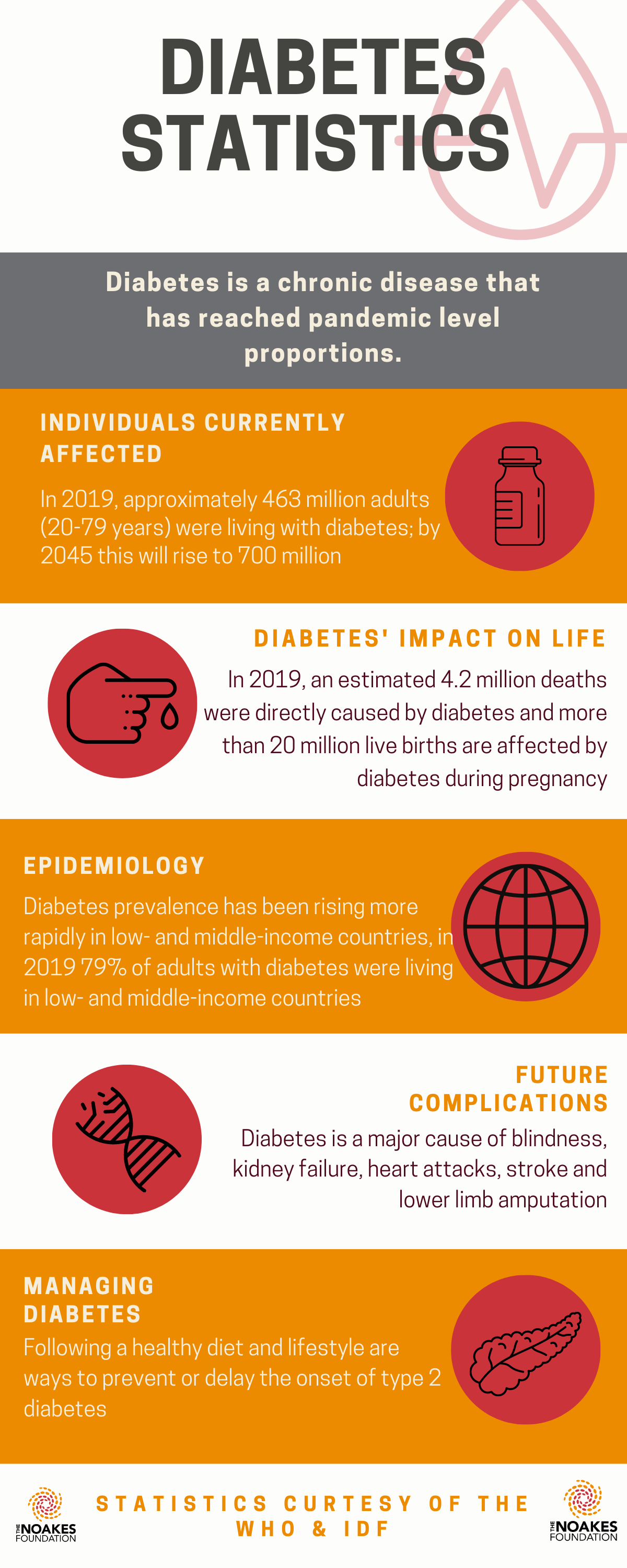 Diabetes has been likened to that of an epidemic, and rightfully so. The World Health Organisation (WHO) has recorded that the global prevalence of both diabetes type 1 and type 2 rose from 108 million people in 1980 to 422 million in 2014. They further stated that diabetes incidences have been rising at a rapid rate in low and middle-income countries, while high income countries are less affected. It has been projected that by 2045 at least 700 million people will be living with diabetes. Unfortunately, a large number of individuals will not be aware of their diabetic status, which puts them at a greater risk of developing a number of adverse health conditions associated with diabetes.